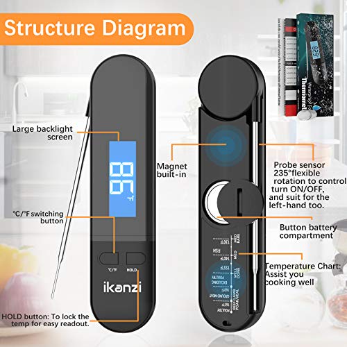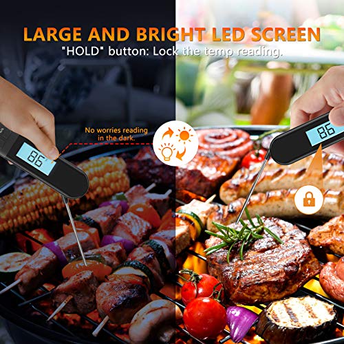 Fast Readout & Accurate: With long and slim probe makes the meat thermometer get temperature readout within 2-3s, high precision sensor with temperature range of -4°F ~ 302°F (-20°C ~ 150°C), accurate to ±2°F. The large backlight display screen is easy anr for reading. Makes the cooking style more convenient and easier.