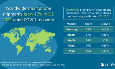 Apple was the number three worldwide smartphone vendor in the second quarter of 2021, according to smartphone shipment estimates shared today by Canalys. Apple’s iPhone sales...