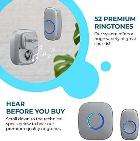 ★OUR PATENT-PENDING SOUND CHIP holds the LARGEST SELECTION of classy, high-quality ding-dong chimes, NO “TINNY”, ANNOYING ringtones. With 52 TOTAL RINGTONES at 4 VOLUME LEVELS, you’ll feel good knowing our ring chime MEMORY CHIP STORES your chosen doorbell chime selections even when unplugged or turned off. LISTEN FOR YOURSELF! Just SCROLL DOWN to the Technical Specs section below & click the Specification Sheet link to DOWNLOAD the PDF.