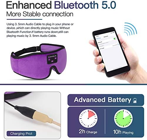 【Longer Service Time and High-quality Playback】Boodlab 3D Wireless Eye Mask offer an upgraded USB chargeable battery, charge about 2-2.5 hours provide more than 10 hours playing time. If Battery runs down,Still can playing music by 3.5mm Audio Cable. Built-in microphone and volume control buttons which enable users to answer hands-free phone calls and handle previous/next song without having to use your phone.Boodlab 3D Wireless Mask bring you peaceful sleep all night.