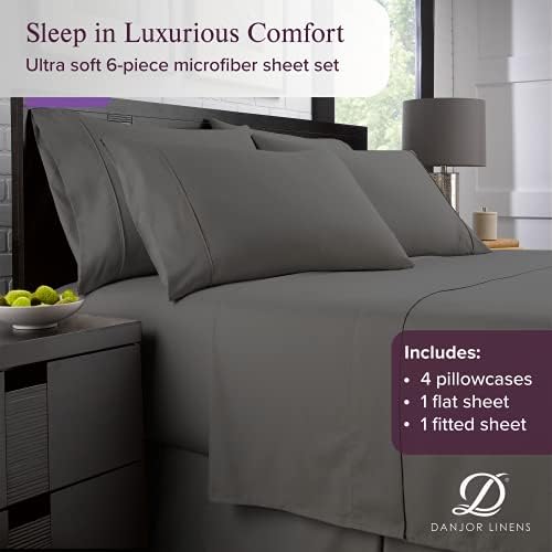Danjor Linens King Size Bed Sheets Set - 1800 Series 6 Piece Bedding Sheet & Pillowcases Sets w/ Deep Pockets - Fade Resistant & Machine Washable - Gray