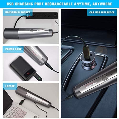 🚖VARIOUS USB CHARGING METHODS: This cordless car vacuum comes with a USB charging port, you can use household sockets, laptops, desktop computers, mobile power, and car USB ports for charging, which is simple and convenient.