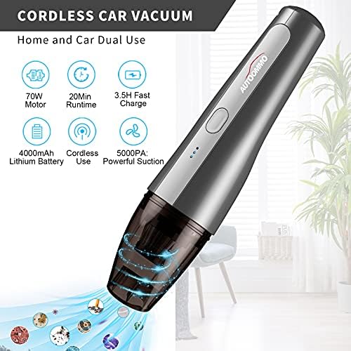 🚖CORDLESS CAR VACUUM CLEANER: AUTOOMMO 5000PA car vacuum is equipped with high-performance luminum alloy fans and will help you easily cleans dust, pet hair, sand, food residue, water stains, debris in car seat or home sofa.