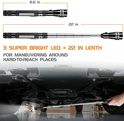 Make It Easier to Pickup: Mechanic magnet is telescopic and can be extended up to an impressive 22 inch.You can pick up things without bend over, this tool is real a good gift for older men,Your dad/mom/grandma/grandpa will easily pick up even from hard to reach places. With 3 bringt LED you can pick up things from dark places like under the bed, in the car or other places without lights, magnetic pickup tool light is gifts for handy men