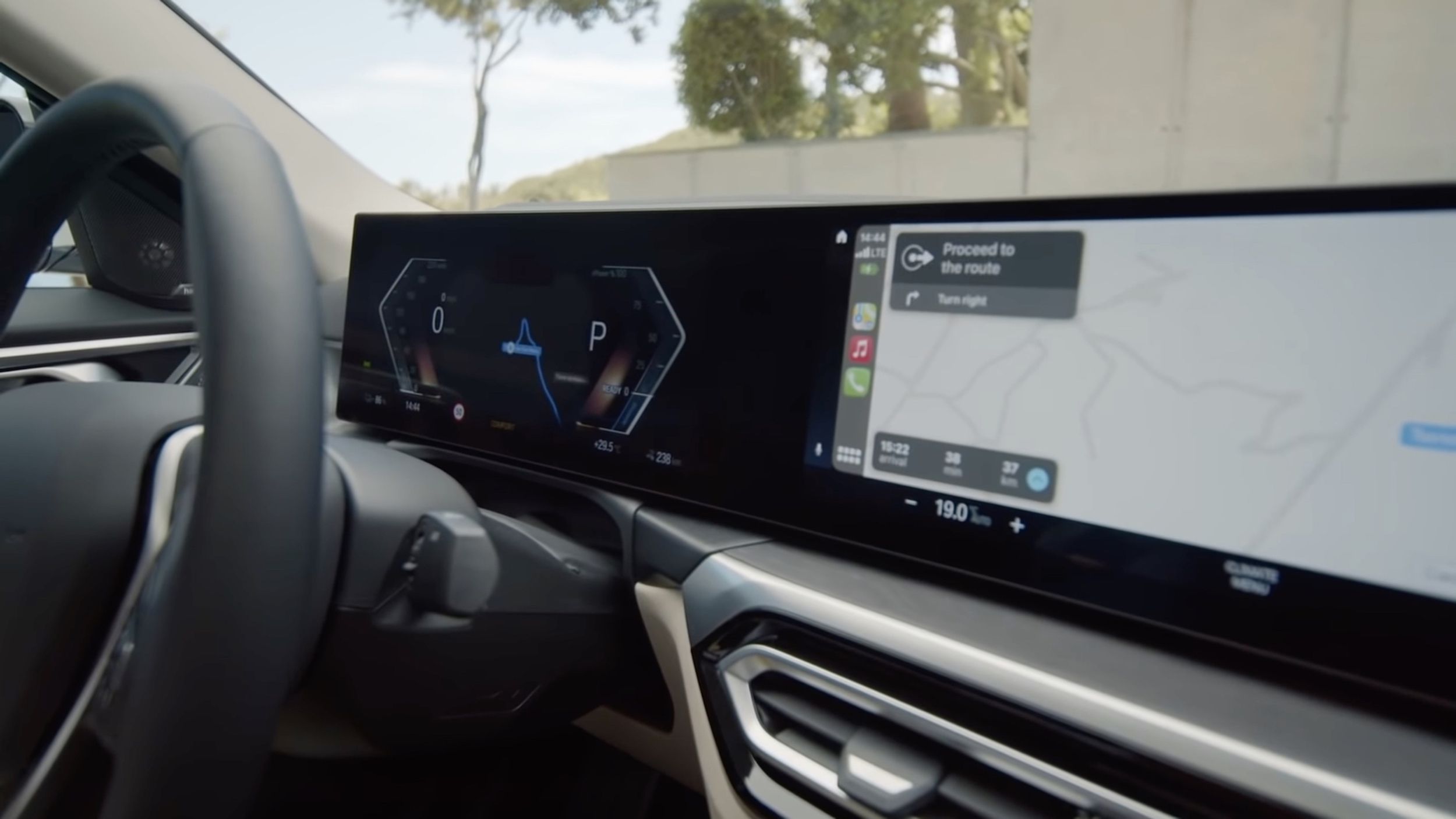 A look at the BMW i4’s CarPlay integration and Apple Maps in the instrument cluster may be seen from 08:40 in the video.