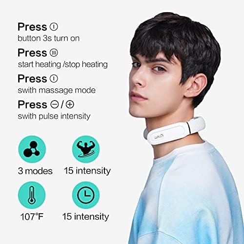 3 MODES, 15 LEVEL INTENSITY: Built up with 3 modes and 15-level intensity to meet your multiple massage demands. Wearing the neck massager, then long press the power button to turn the machine on or off. The massager is preset to turn off automatically in 15 minutes, and you can freely adjust it for convenience and safety.