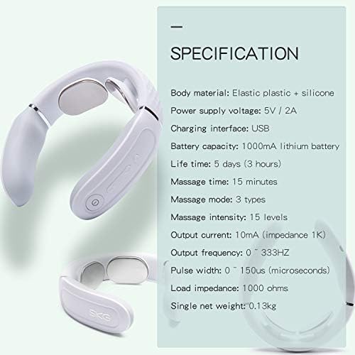 LIGHT WEIGHT, MOVE FREELY CORDLESS DESIGN: SKG 4356E neck massager weighs 4.93 oz. and is skin-friendly with no bound feelings. With intelligent 3D suspension cordless use design, equipped with 1000 mAh built-in charging power, which supports to 8 times use per charge, works 15min at a time. No needs to be plugged by using anywhere anytime.