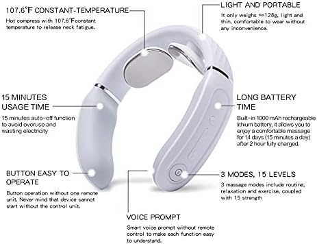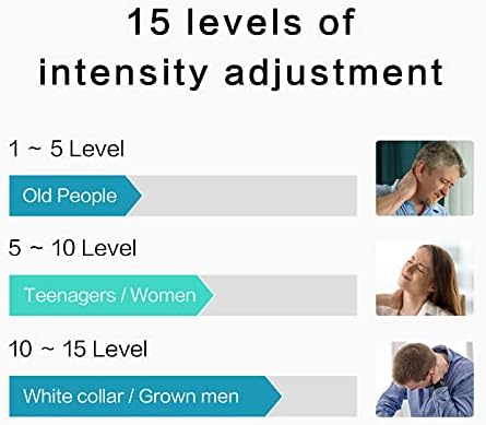 3 MODES, 15 LEVEL INTENSITY: Built up with 3 modes and 15-level intensity to meet your multiple massage demands. Wearing the neck massager, then long press the power button to turn the machine on or off. The massager is preset to turn off automatically in 15 minutes, and you can freely adjust it for convenience and safety.
